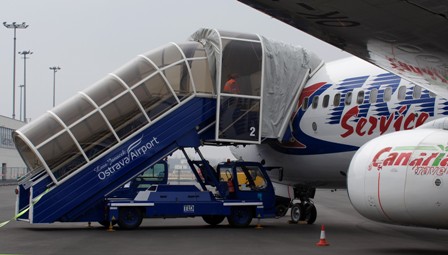 Útvar Odbavení letadel Letiště Ostrava, a.s. převzal v září 2011 v rámci projektu Stroje a zařízení II. – Samohybné nástupní schody k letadlům (do 5,8 m).