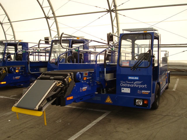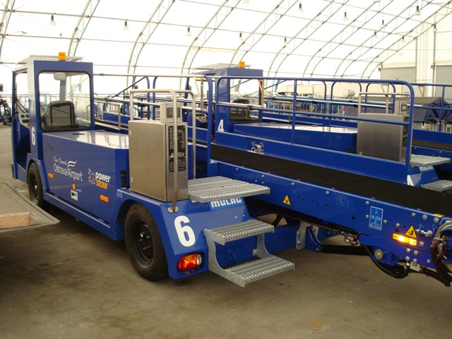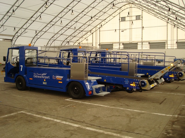 Útvar Odbavení letadel Letiště Ostrava, a.s. převzal v březnu 2013 v rámci projektu Stroje a zařízení II. – Samohybné pásové nakladače na zavazadla.
