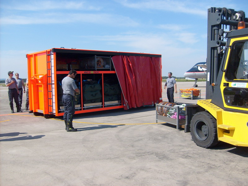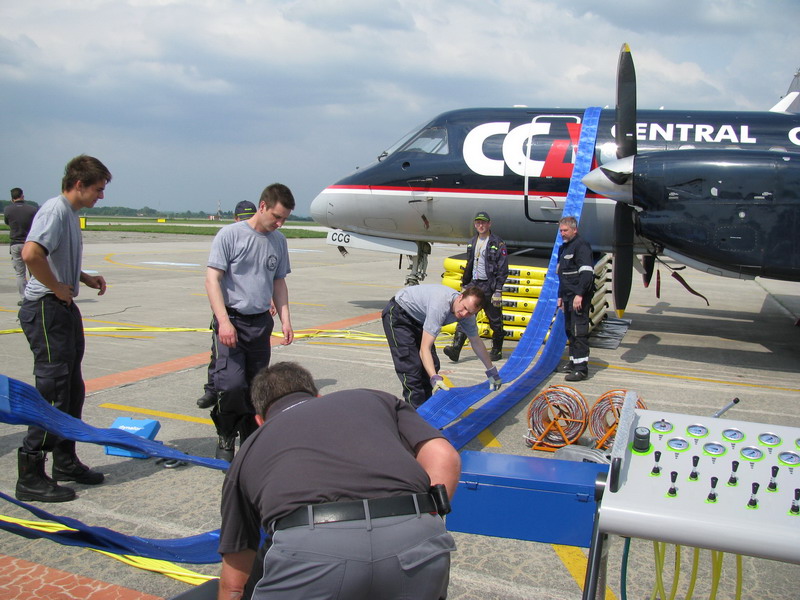 Ve dnech 18. - 21. 5. 2009 proběhlo školení pracovníků HZS za účasti zástupců dodavatelské firmy na obsluhu a údržbu zařízení. Jednalo se o speciální nácvik vyprošťování letadla, cvičení proběhlo pod dohledem školícího centra letiště Fraport (ve Frankfurtu) a výrobce zařízení. V dopoledních hodinách probíhalo teoretické školení obsluhy vyprošťovací techniky, odpoledne pak praktický výcvik vyprošťování letadla v prostorech severní stojánky. Naše letiště má nyní vyškolený personál pro případy mimořádných událostí.